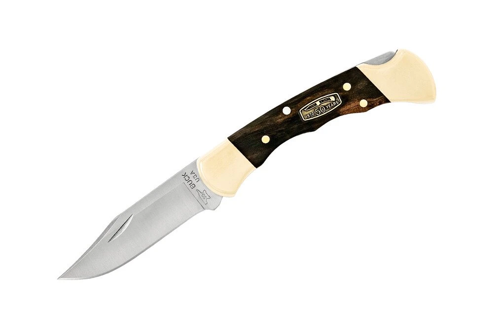 Buck Knives 112 Ranger Finger Groove 50th Anniversary Genuine Ebony Wood Folding Knife W/Sheath