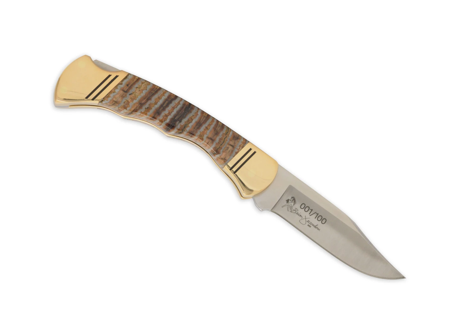 Buck Knives 112 Ranger Finger Groove Custom Natural Mammoth Tooth By Brian Yellowhorse W/ Sheath – Limited Edition