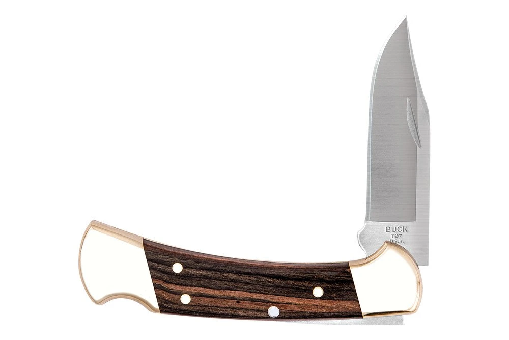 Buck Knives 112 Ranger Genuine Ebony Wood Folding Knife W/ Upgraded Suede Leather Sheath