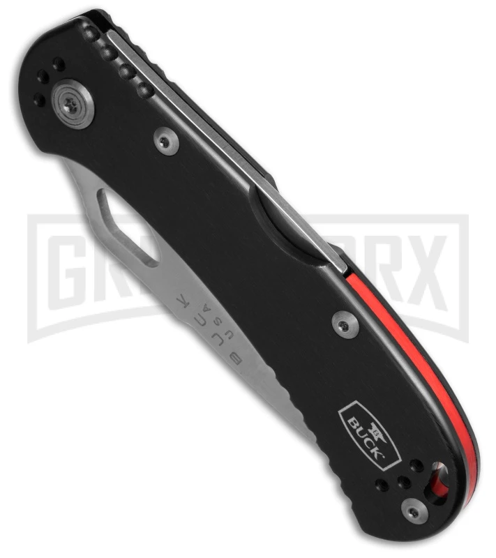 The SpitFire line of knives from Buck are colorful folders. They are very slim and sleek, with a lockback mechanism for safe use and thumb hole for easy one-hand opening. Black anodized aluminum handles make for a light and durable tool. Item includes a four-way reversible pocket clip.