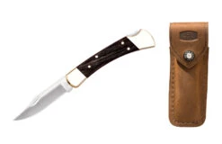 Buck Knives 110 Finger Groove Genuine Ebony Wood Folding Hunter W/ Upgraded Suede Leather Sheath